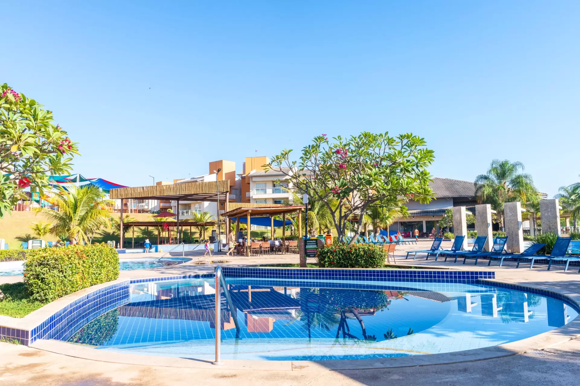 Estrutura completa de hospedagem e lazer no ponto mais privilegiado do Lago Corumbá: um incrível complexo que conta com piscinas naturais e aquecidas, ofurôs, espaços gastronômicos e uma área de praia à beira do lago.
